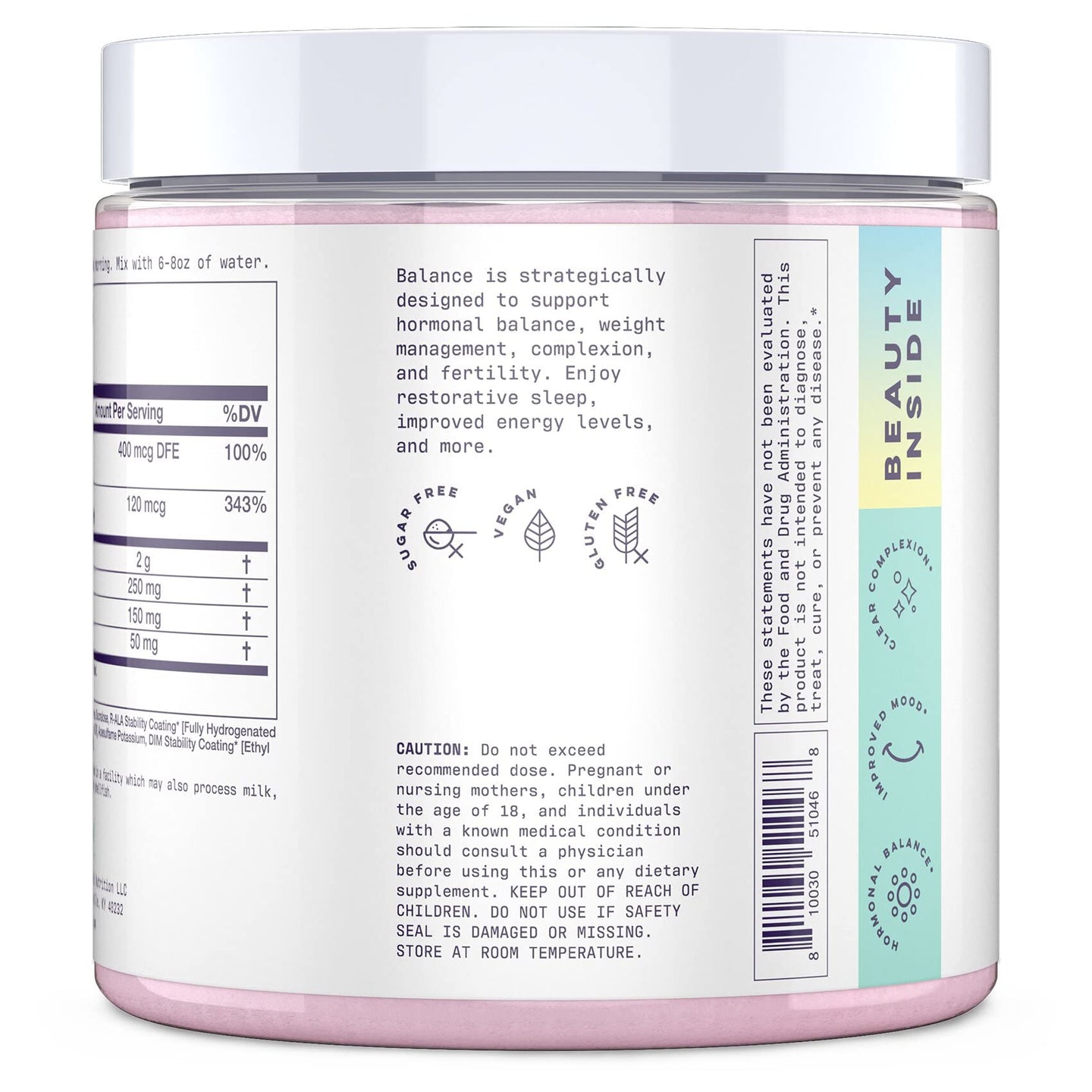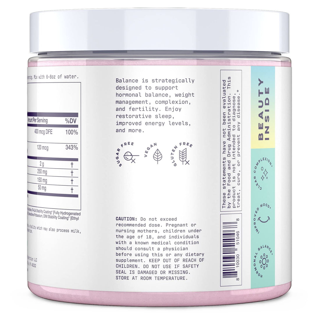 Wake up and get glowing with a tasty scoop of this daily beauty powder. Available in two mouthwatering flavors, Balance Powder features our signature hormonal-balancing formula. With ingredients like folate and chromium, it’s strategically designed to support hormonal balance, weight management, clear complexion, and more!