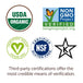 The Garden of Life Organics line of gummies is a true health crusader, ditching the conventional vitamin gummy course by steering clear of processed sugars and syrups, artificial colors and flavorings, animal products, and GMOs. With our clean gummy technology, there are no “candy” ingredients, no pig gelatin or corn starch. You can rest assured you are receiving a true, whole food vitamin fruit chew that not only is good for you, but is great-tasting! They are Certified USDA Organic, Non-GMO Project Verified, Certified Gluten Free and Kosher.