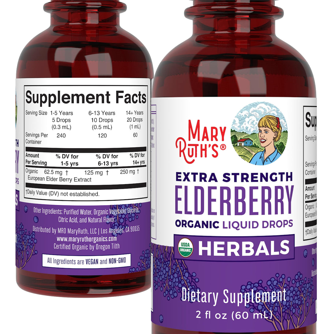Elderberry Syrup: Elderberries | the fruit of the Sambucus tree | have been used for generations. With our delicious Liquid Elderberry in regular or extra strength | you can easily take this by mouth as a tincture or add it to your favorite beverage. Elderberry may support your immune system and overall health. Our Organic Elderberry Liquid Drops in regular or extra strength can be taken as a tincture | added to your favorite fruit smoothie | or mixed in with MaryRuth's Multivitamin or Multiminerals.
