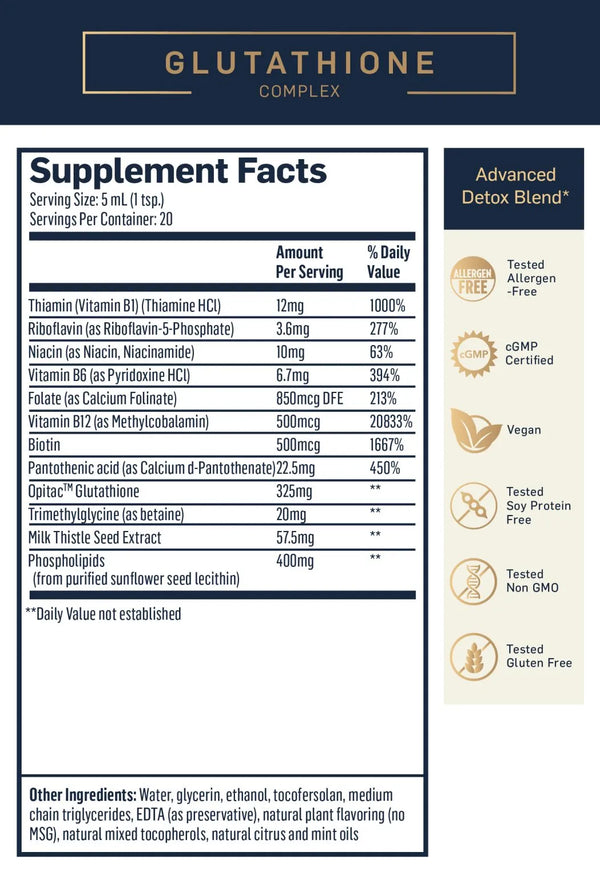 All-in-one detox blend - Cleansing, Liver, Immune + Energy Support with Active B Vitamins, Milk Thistle, Antioxidant Liquid Glutathione.