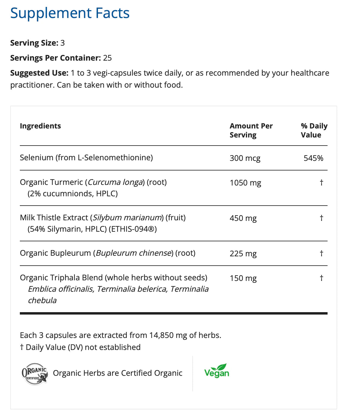A blend of Ayurvedic herbs and concentrated Milk Thistle extract help promote liver health and hepatic cell activity. Milk Thistle supports optimal glutathione levels to enhance antioxidant defenses for the liver.