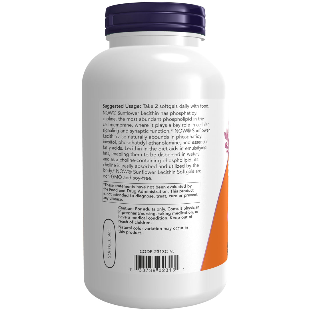 NOW® Sunflower Lecithin has phosphatidyl choline, the most abundant phospholipid in the cell membrane, where it plays a key role in cellular signaling and synaptic function.* NOW®Sunflower Lecithin also naturally abounds in phosphatidyl inositol, phosphatidyl ethanolamine, and essential fatty acids. Lecithin in the diet aids in emulsifying fats, enabling them to be dispersed in water; and as a choline-containing phospholipid, its choline is easily absorbed and utilized by the body.* NOW® Sunflower Lecithin Softgels are non-GMO and soy-free.