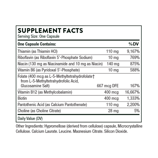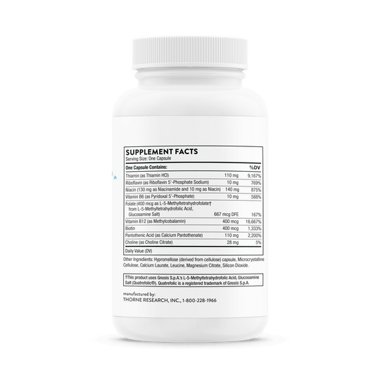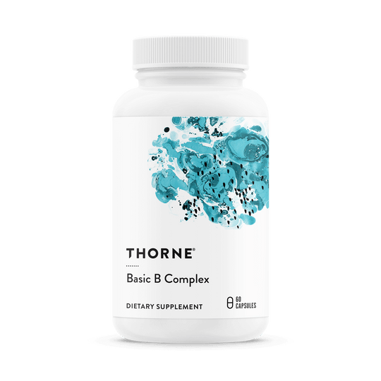 Sold out            Vendor: THORNE THORNE Basic B Complex Thorne’s Basic B Complex formula contains the active forms of the B vitamins, making it easy for your body to absorb them. This comprehensive blend provides multiple benefits to support your lifestyle, such as helping convert...Regular price $26.00