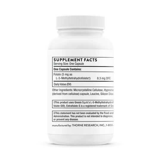 Vendor: Performance Nutrition Thorne 5-MTHF 5mg Support heart health, fetal development, nervous system, and mood with 5-MTHF* 5-MTHF is a bioactive, methylated form of folate, an essential B vitamin that supports heart, brain, blood, and bone health and is suitable for individuals...Regular price $68.00