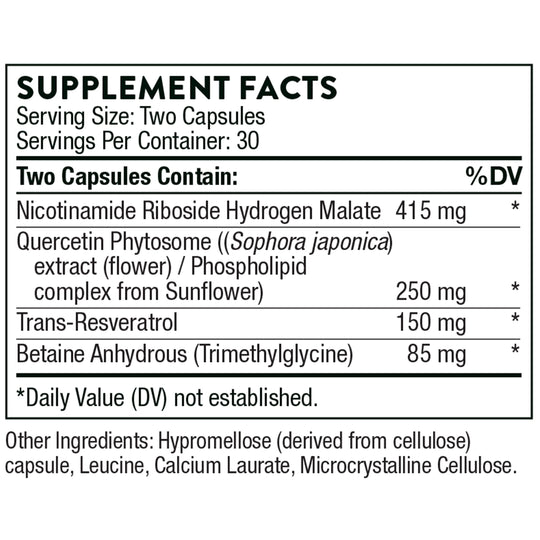 Thorne's ResveraCel supports cellular repair, up-regulates the sirtuin proteins, enhances NAD+ production, and benefits the cellular energy production that takes place in the mitochondria – thus supporting the process of healthy aging. Adding ResveraCel to your...Regular price $58.00 -