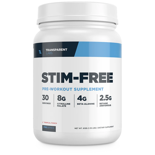 Transparent Labs Stim-Free Pre-Workout is for gym-goers and active individuals who exercise later in the afternoon/evening and those who are sensitive to stimulants like caffeine. Alternatively, you might be taking a "stim break" and looking to...Regular price $49.99 -