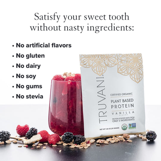 You deserve plant based protein powder with simple, clean ingredients. No fillers. No preservatives. No artificial colors or sweeteners. Just pure deliciousness. Add Truvani pea protein powder to your breakfast smoothie or your post-workout protein shake...Regular price $3.99 -