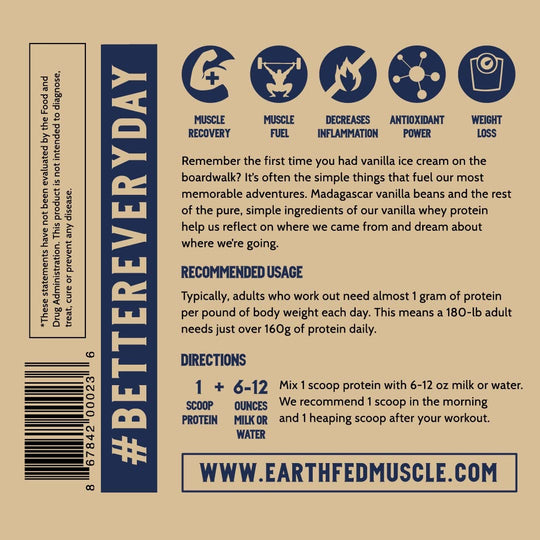 Earth Fed Muscle Whey Back Vanilla Truly Grass Fed Whey