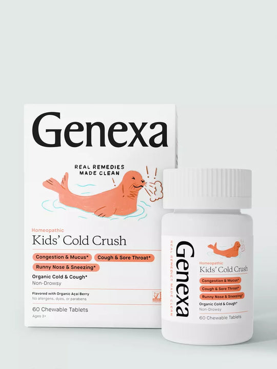 Genexa Kids' Cold Crush is a real remedy, made clean. This homeopathic remedy addresses symptoms of the common cold including congestion, mucus, cough, sore throat, runny nose, and sneezing.Regular price $13.99 -