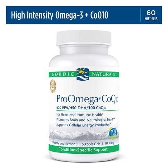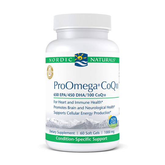 Pharmaceutical GradeMolecularly DistilledOmega-3 Fish OilNordic Naturals ProOmega CoQ10 contains a blend of highly concentrated omega-3 fatty acids and CoQ10 to support cardiovascular health. ProOmega CoQ10 supports overall heart health by supporting circulation, improving arterial elasticity, maintaining...Regular price $41.99 -