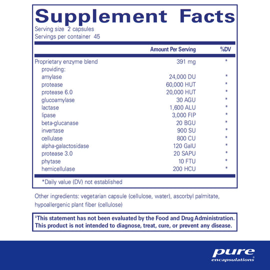 90 Capsules Pure Encapsulations Digestive Enzymes Ultra is a unique blend of vegetarian digestive enzymes designed to support enhanced nutrient absorption, plus digestion of protein, carbohydrates, fats, fiber, and dairy.With a blend of essential enzymes, including...Regular price $36.99 -