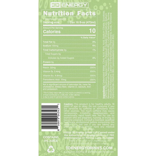 About this item FUNCTIONAL ENERGY BEVERAGE: 3D Energy Drink is packed with 200 mg of caffeine to get you going, but with zero sugar to avoid the crash. 3D flavors are smooth, lightly carbonated, bursting with...Regular price $2.99 -