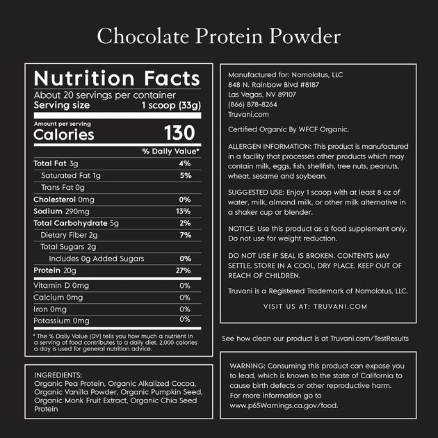 Truvani Vegan Protein Powder Chocolate