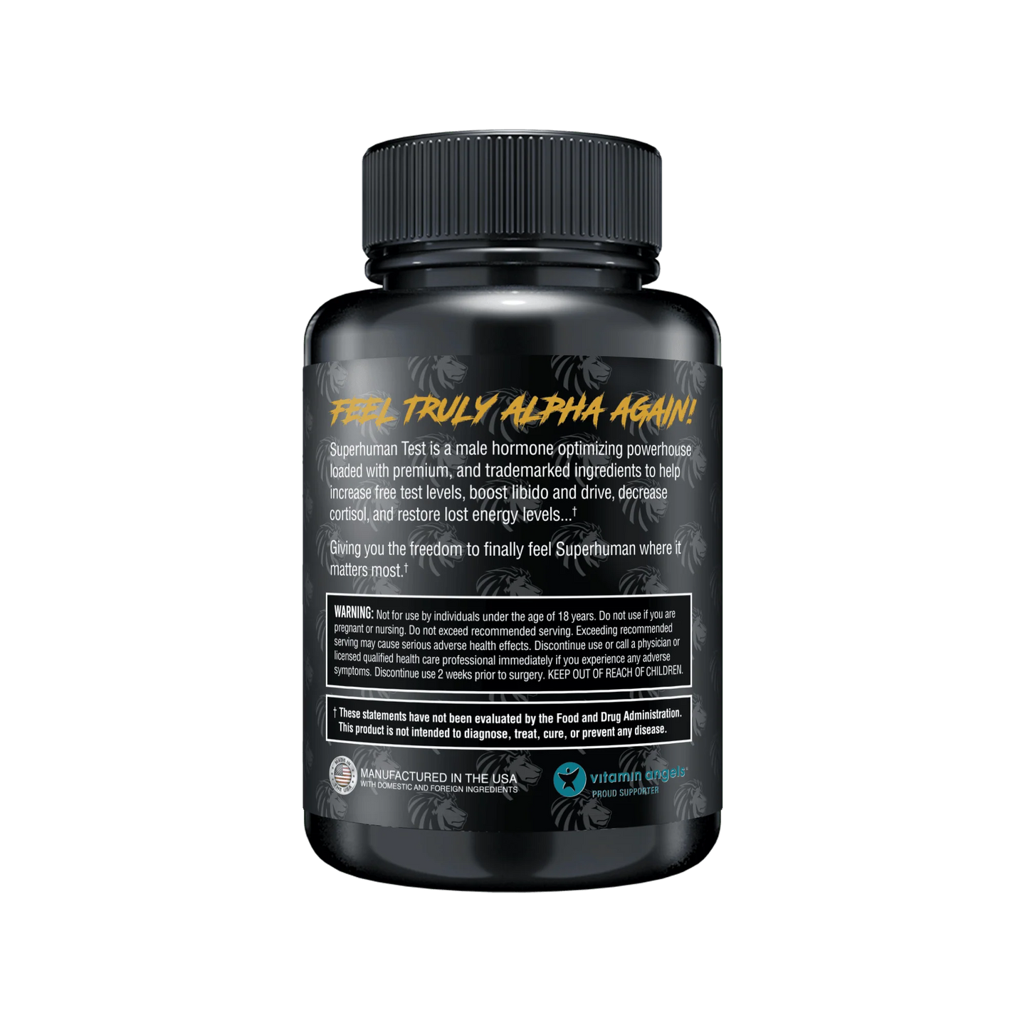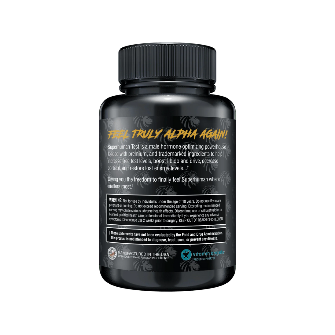 Super human Test (30 servings) is an all natural hormone optimizing supplement that contains only premium patented ingredients. It is free from hormones and is designed to increase free test levels, enhance drive, and improve energy and mental clarity. With this supplement, you can boost your performance in and out of the gym.