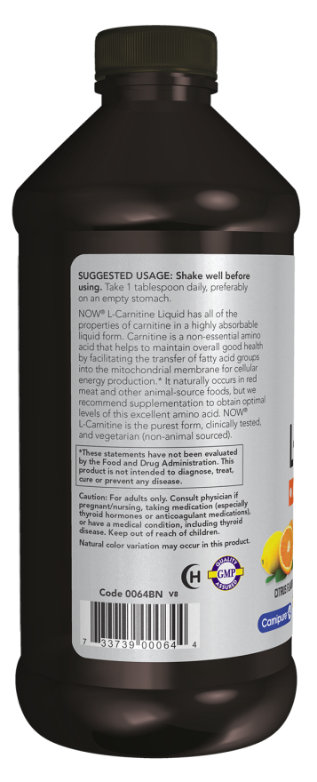 Product Color: Clear to light pink 3,000 MG Highly Absorbable Fat Metabolism* Citrus Flavor NOW® L-Carnitine Liquid has all of the properties of carnitine in a highly absorbable liquid form. Carnitine is a non-essential amino acid...Regular price $39.99 -