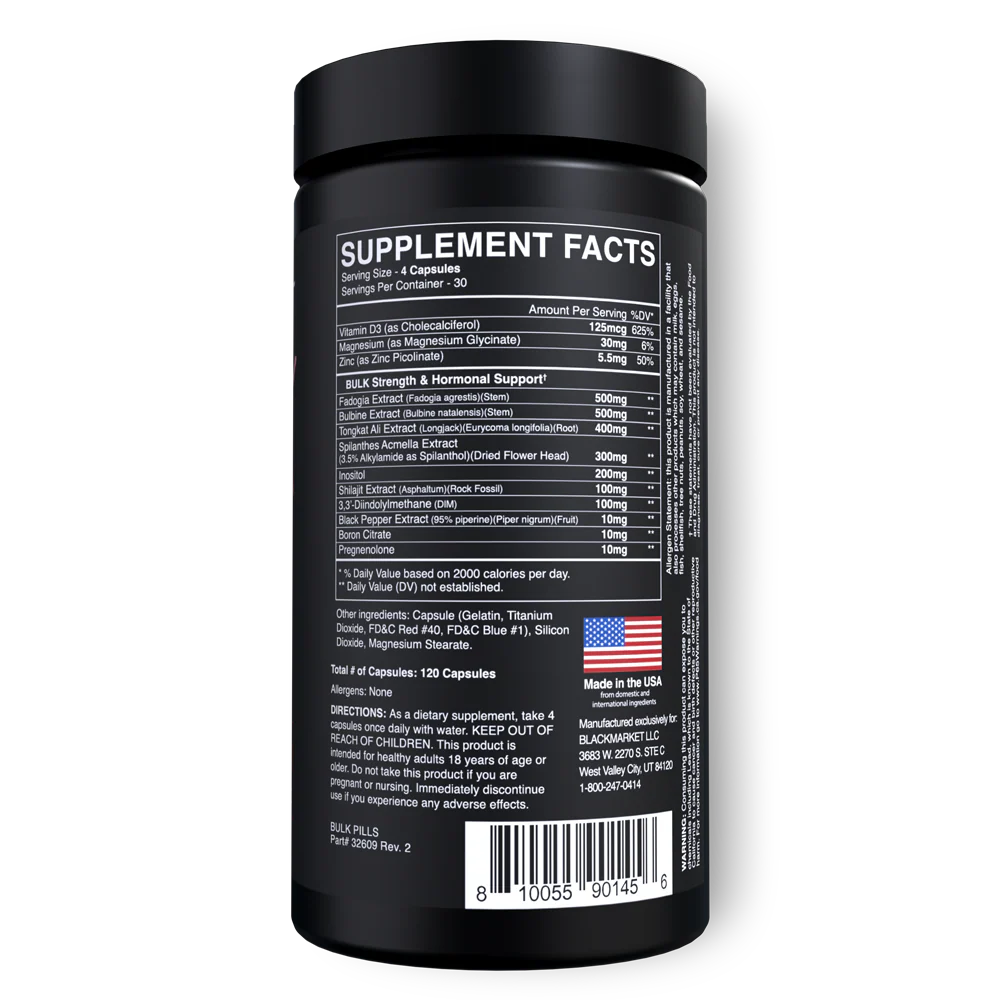 PURPOSE: BULK PILLS are your results-driven strength and testosterone support solution. With this research-backed formula, lift heavier, recover faster, and feel more powerful. BULK PILLS fuels your gains from the inside out, so you don't just lift more, you become more.